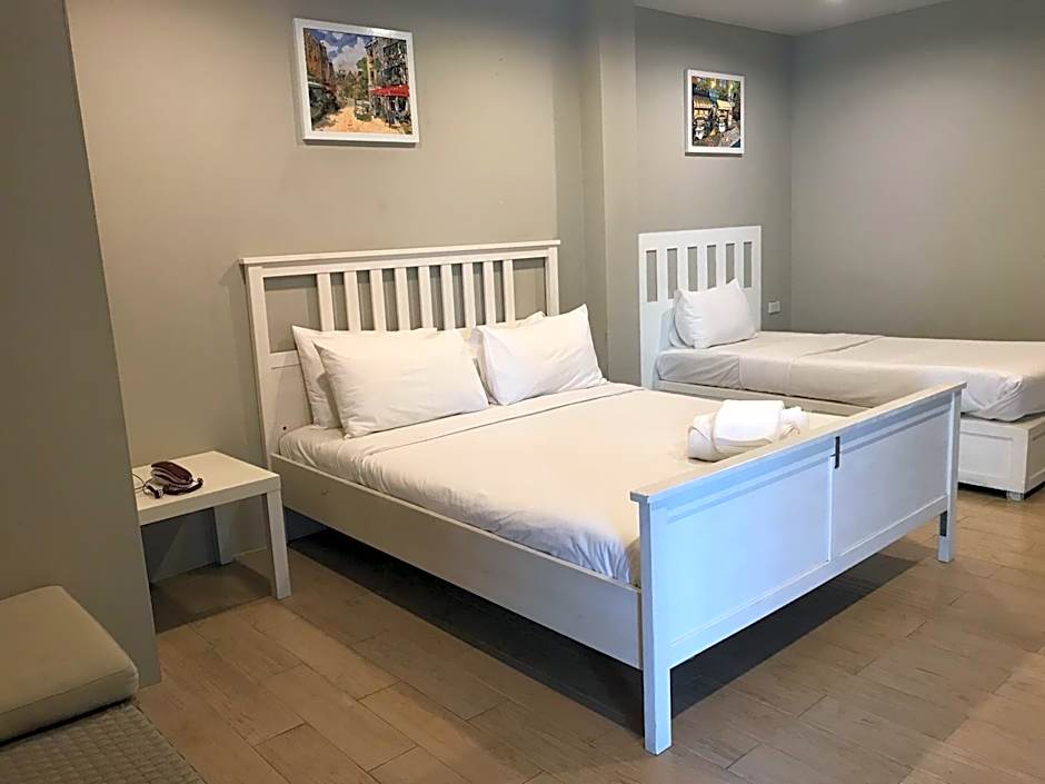 This room can accommodate up to 3 guests. It has a TV and a fridge.